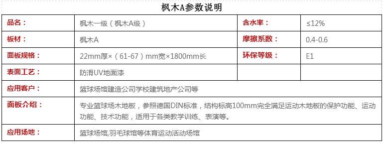 物理性能:楓木質堅硬、沉重,具有良好的強度性能,具有特別高的抗摩擦及抗磨損強度,亦具有良好的抗蒸汽彎曲性能. 適合室內運動場所地板之用.